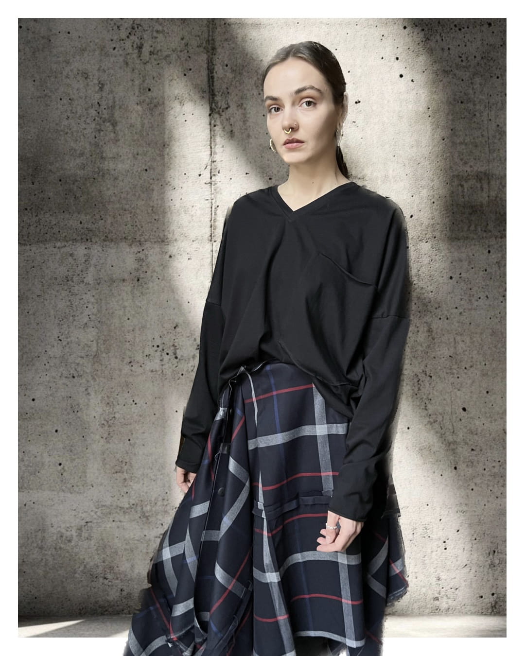 Longsleeve z dekoltem V. Wycięcie V, z przodu kieszonka. Uszyte z cienkiej bawełny 155 gr. Jeden rozmiar, onesize. Dekolt wykończony cienką plisą. Dół i rękawy surowe.