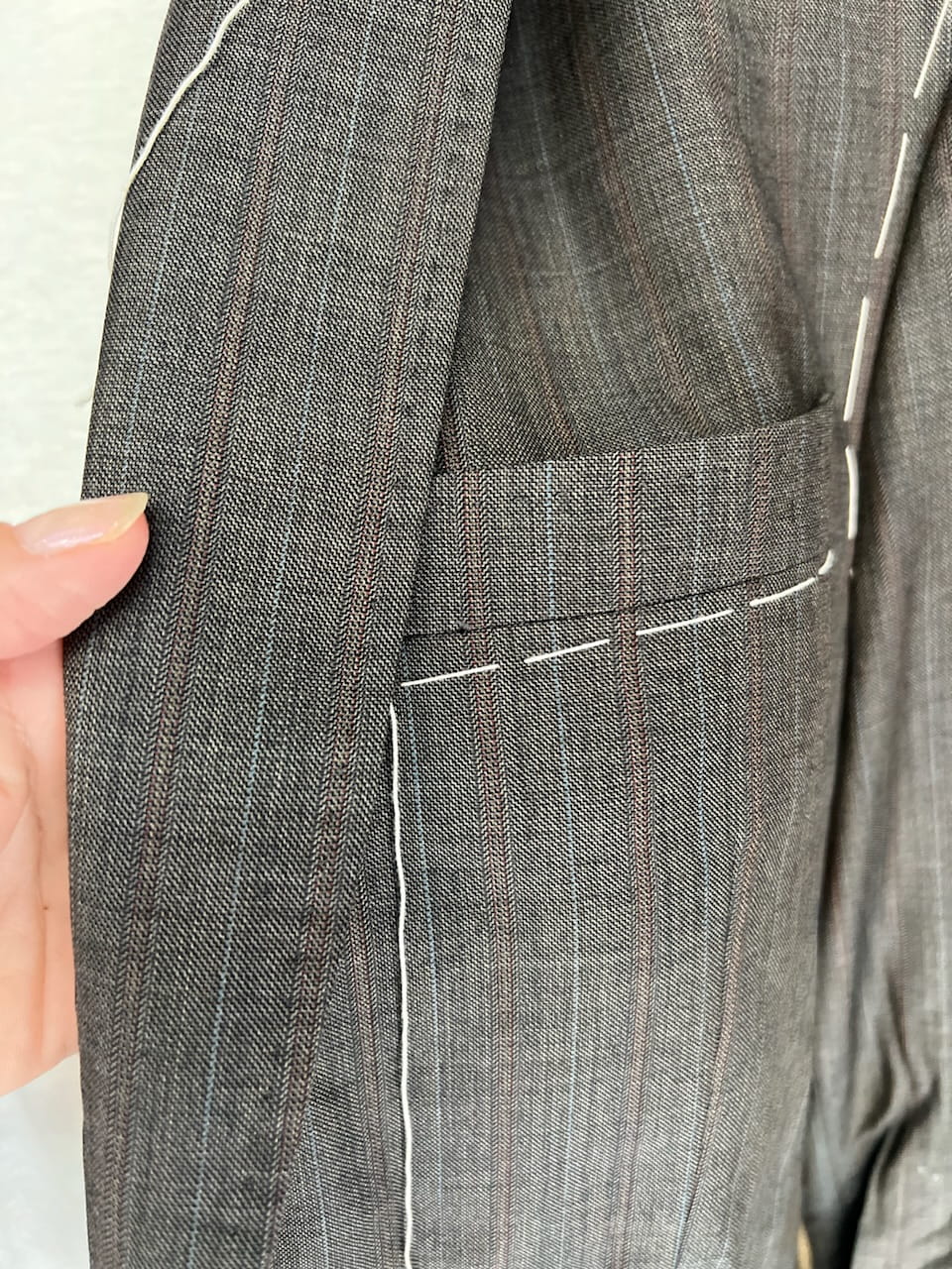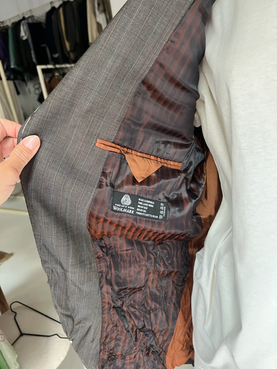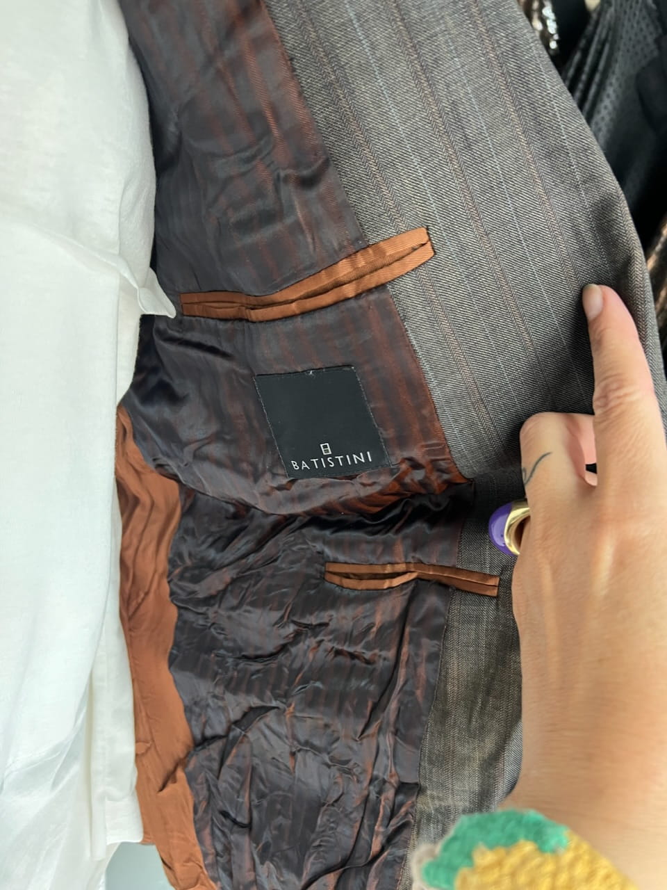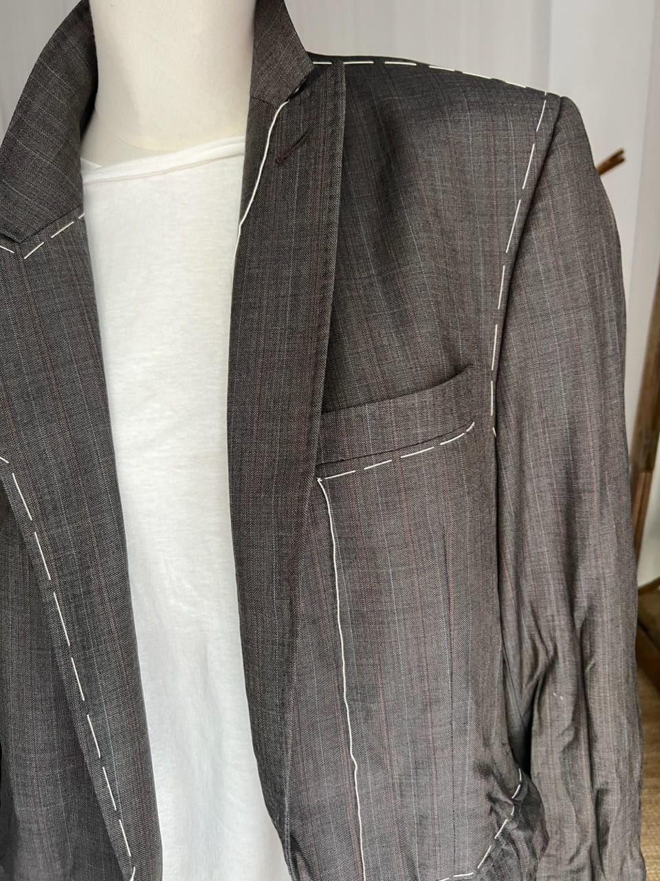 Marynarka męska, sprana, gnieciona. Obszyta nicią krawiecką. Z tyłu logo PtASZEK. Jeden jedyny projekt upcyclingowy.