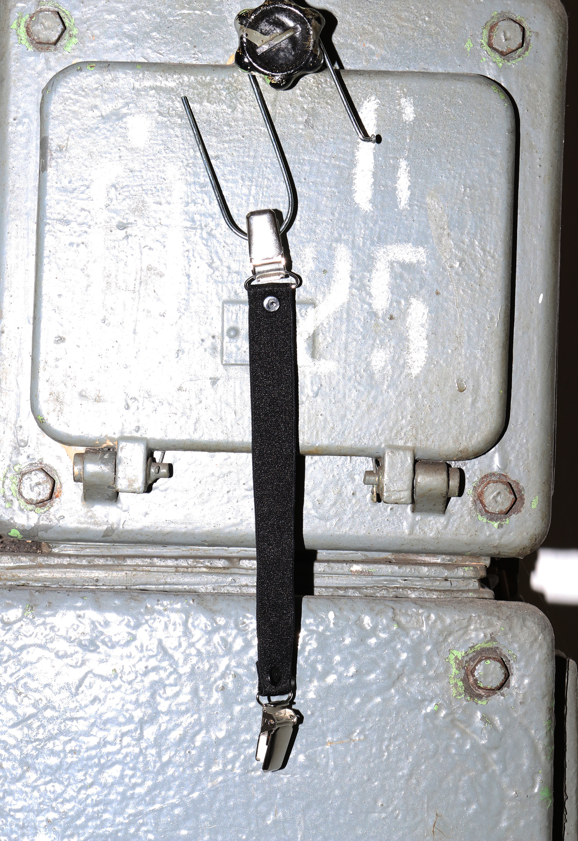 Zapinka/ żabka. Mocowana czarnymi nitami, żabki srebrne. Zrobiona z czarnej gumy. Idealna do swetrów, narzutek, alternatywa zapięcia.